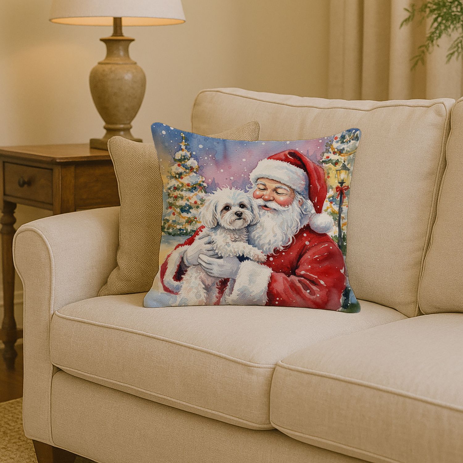 Home > Bichon Frise with Santa Claus Throw Pillow Decorative Indoor Outdoor Accent Cushion for Couch, Bed or Patio, 14Hx14W